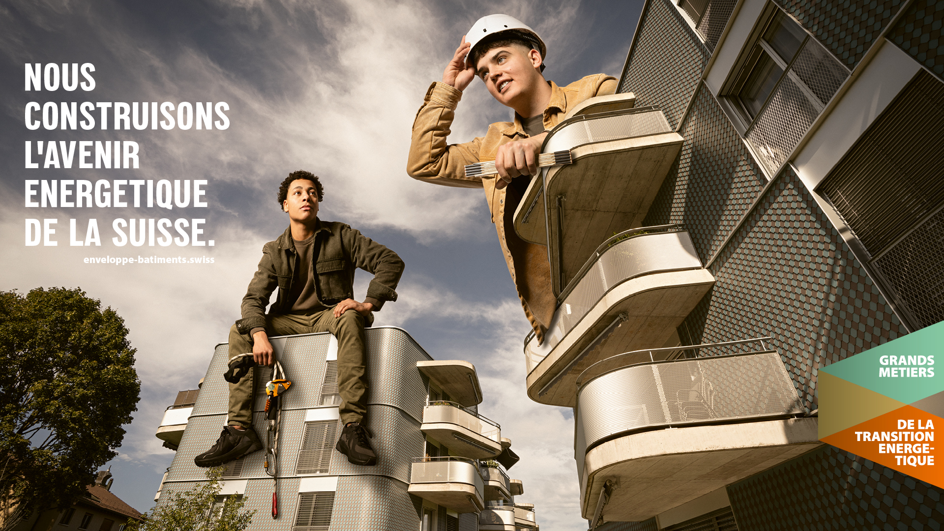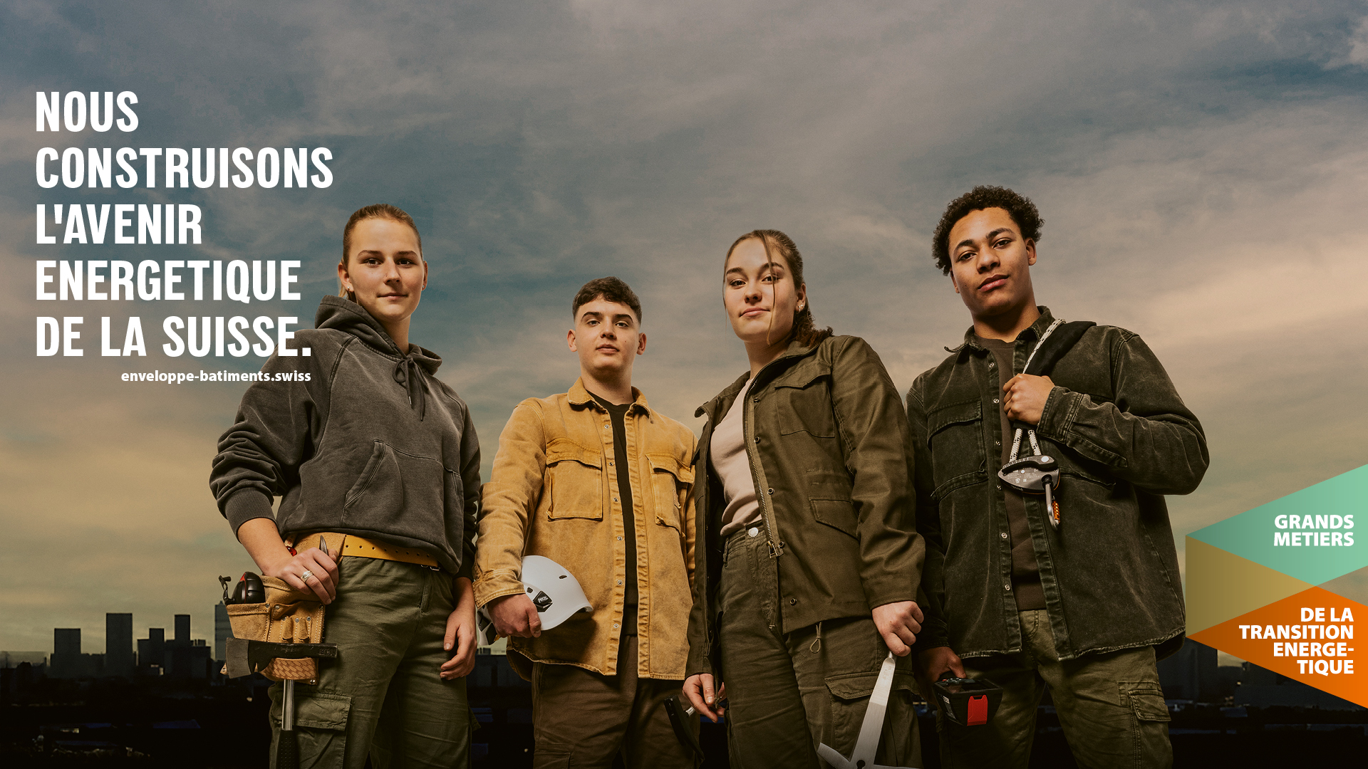 ... et ils proposent dans ce cadre un grand nombre de métiers riches de sens. Ensemble, nous bâtissons l’avenir énergétique de la Suisse. Cette campagne fait le lien entre les sites enveloppe-batiments.swiss et à-la-hauteur.ch et a pour principal objectif de donner une image positive de la branche de l’enveloppe des bâtiments à moyen terme.
